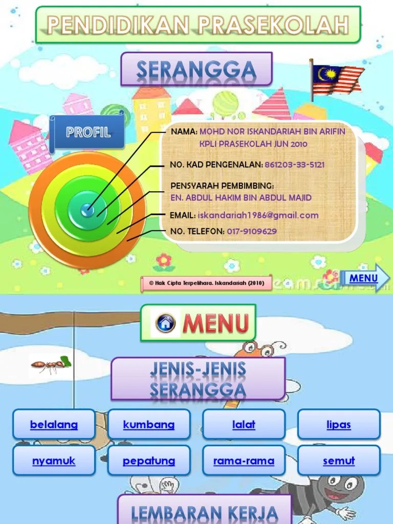 Diri saya sub tema : tema serangga prasekolah. Murid sudah mengenal lalat dan belalang bahan :